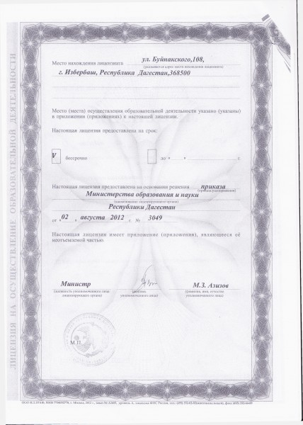 | Адрес местонахождения образовательной организации* | 368500 Республика Дагестан, г. Избербаш, ул. Буйнакского,8 |
